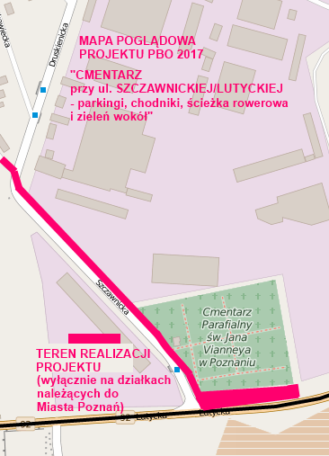 Cmentarz przy ul. Szczawnickiej/Lutyckiej - parkingi, chodniki, ścieżka rowerowa i zieleń wokół
