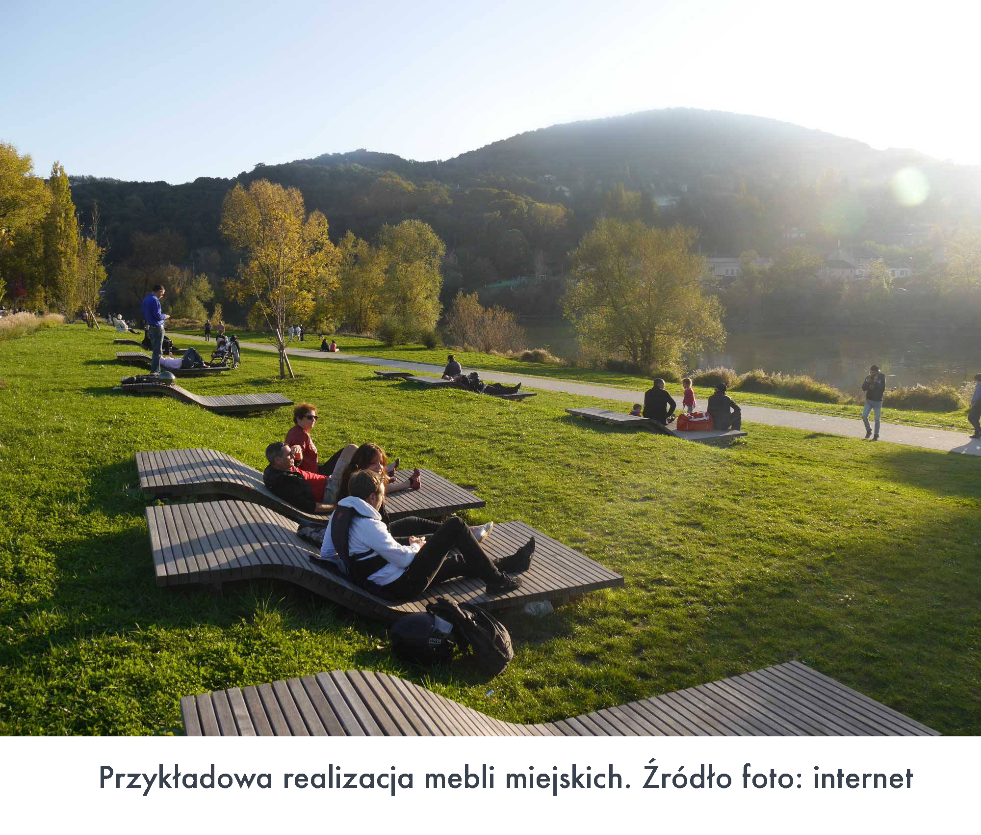 Meble miejskie do pracy i wypoczynku w otwartej przestrzeni miasta