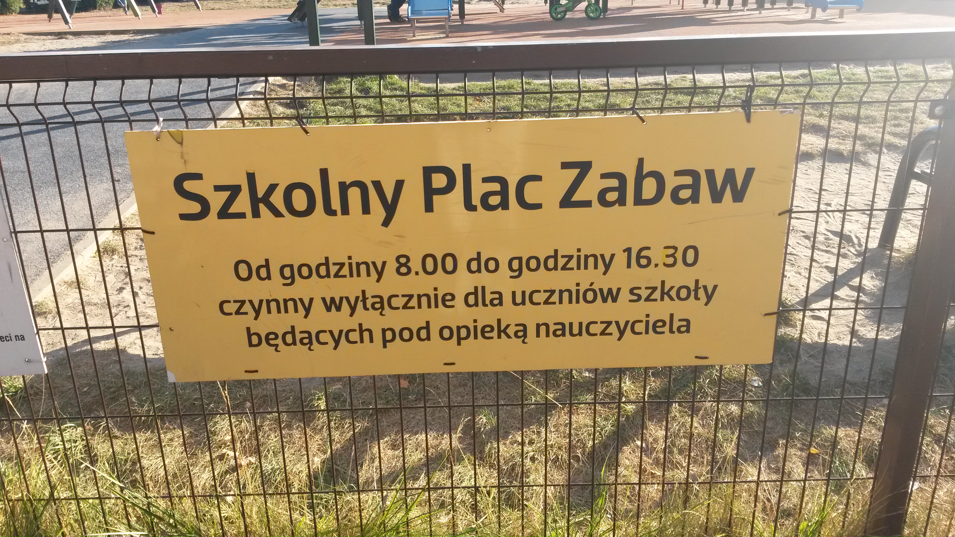 plac zabaw ogólnodostępny po godzinach działania szkoły, podobnie jak boisko Orlik