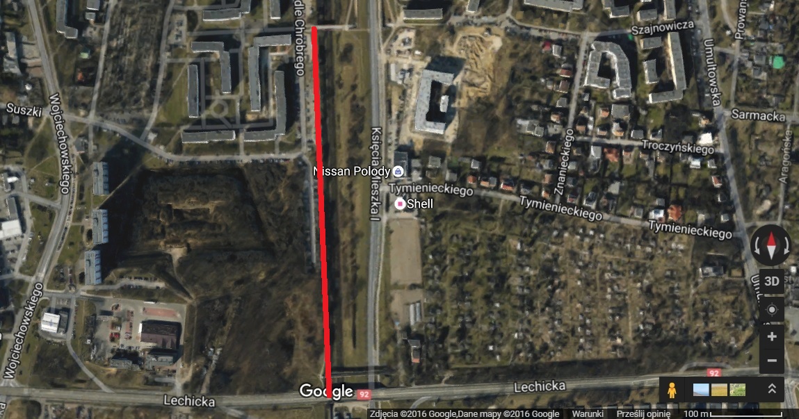 trasa realizowana byłaby od strony osiedla Chrobrego